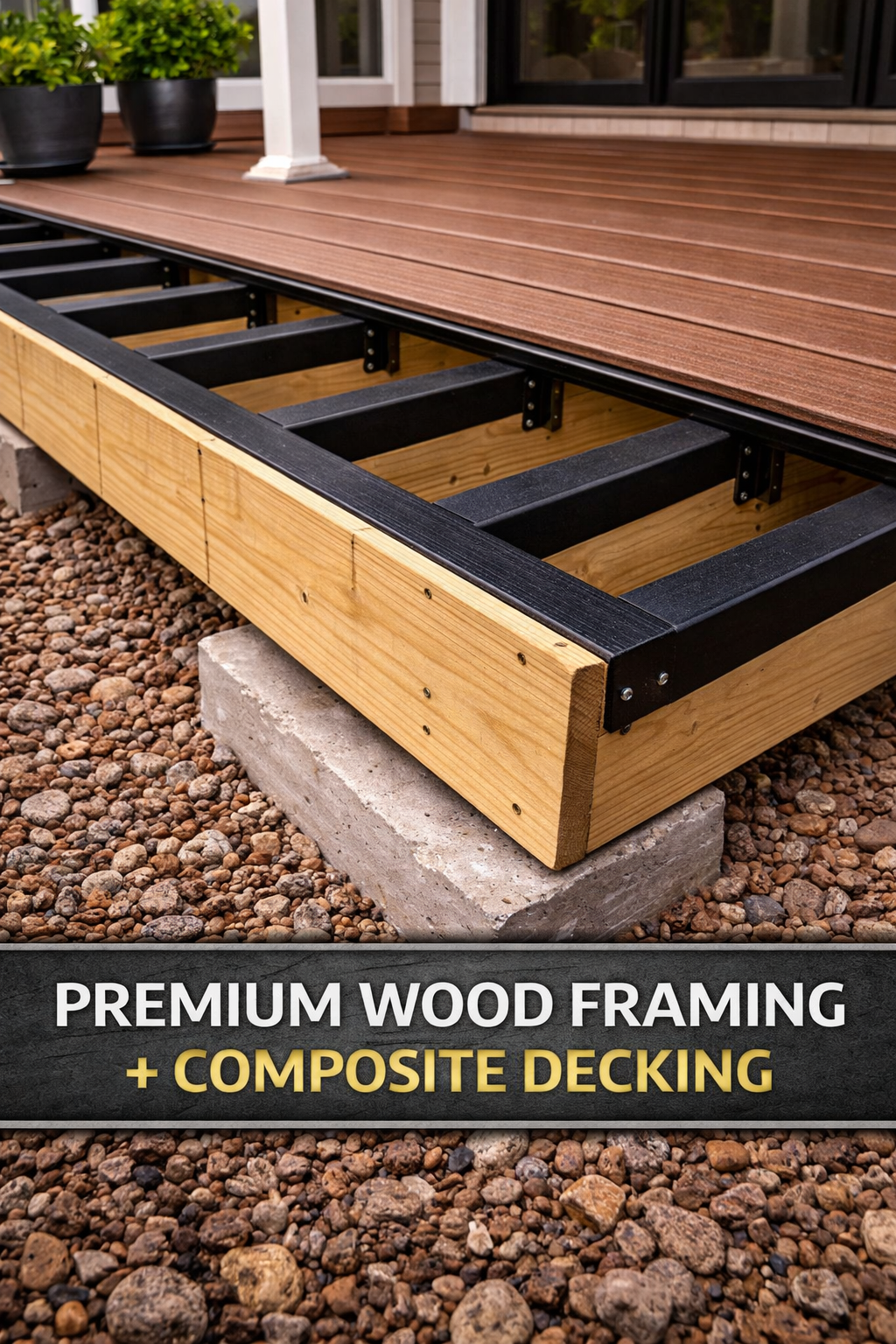 One of the most popular options is a properly protected wood-framed deck paired with composite or PVC decking.