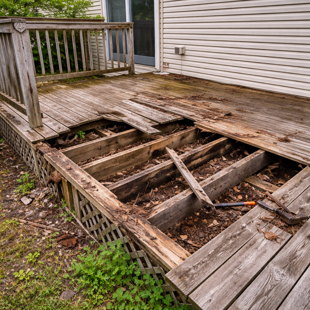 Most decks do not fail because of the decking boards. They fail because water destroys the framing underneath.